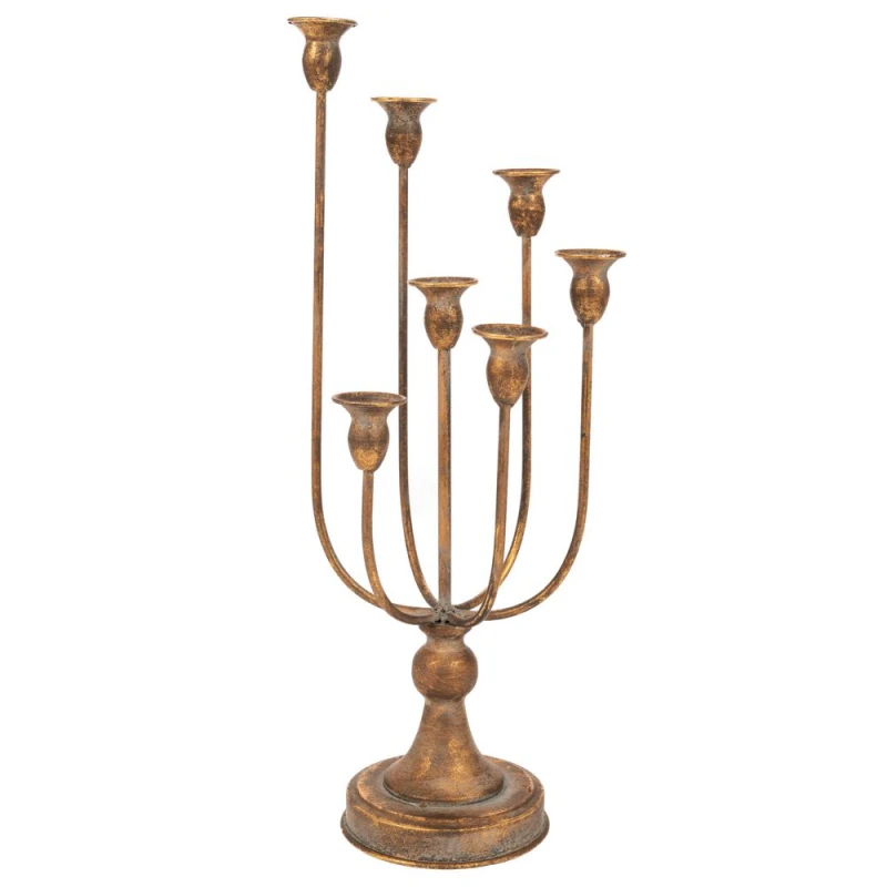 Μια εκλεπτυσμένη επιλογή διακόσμησης που προσδίδει αίσθηση πολυτέλειας και κομψότητας στον χώρο σας. Με τις 7 θέσεις του, μπορεί να φιλοξενήσει κεριά, δημιουργώντας μια ζεστή και ρομαντική ατμόσφαιρα. Η χρυσή του επιφάνεια αναδεικνύει το φως των κεριών, προσθέτοντας λάμψη και φινέτσα σε τραπεζαρίες, σαλόνια ή και σε επίσημες εκδηλώσεις. Είναι ιδανικό για κλασικούς αλλά και μοντέρνους χώρους, προσφέροντας μια διαχρονική αισθητική.