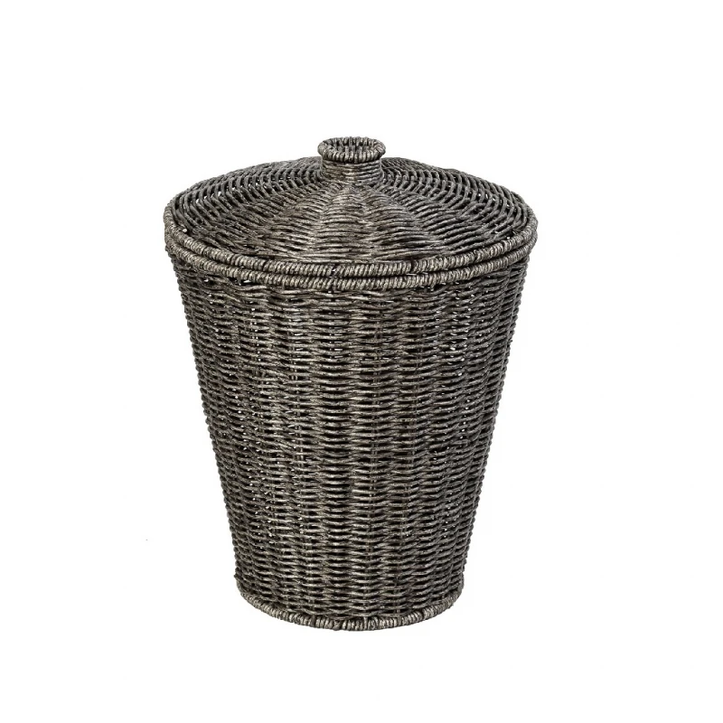 Καλάθι ψάθινο με καπάκι σε γκρι χρώμα από την ESPIEL - Διαστάσεις: 25x25x35εκ.