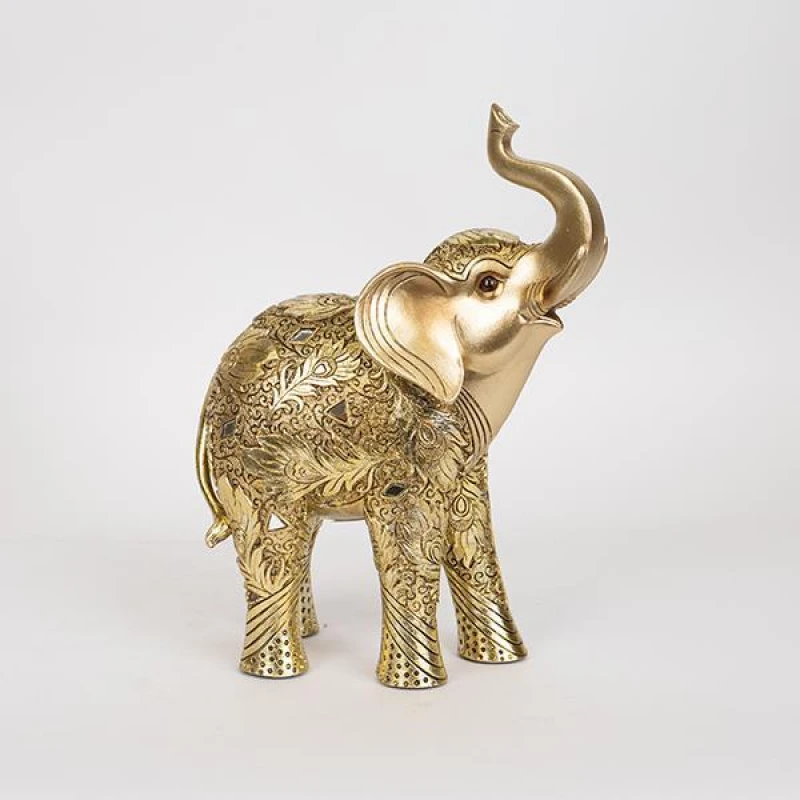 Διακοσμητικός επιτραπέζιος ελέφαντας polyresin σε χρυσό χρώμα από την ESTHETI - Διαστάσεις: 22x11x30εκ.