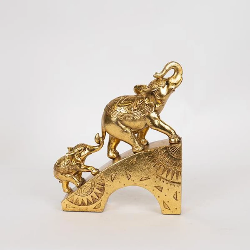 Διακοσμητικός επιτραπέζιος ελέφαντας με ελεφαντάκι polyresin σε χρυσό χρώμα από την ESTHETI - Διαστάσεις: 21,5x6,5x25εκ.