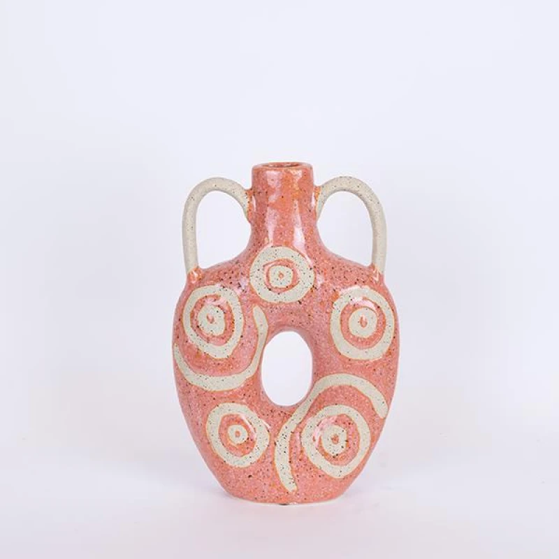 Βάζο κεραμικό σε ροζ - μπεζ χρώμα από την ESTHETI - Διαστάσεις: 20,5x7,2x31εκ.