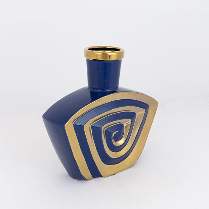 Βάζο Κεραμικό Χρυσό-Σκούρο Μπλε 23,2x6,8x23,5εκ. ESTHETI 752-20342