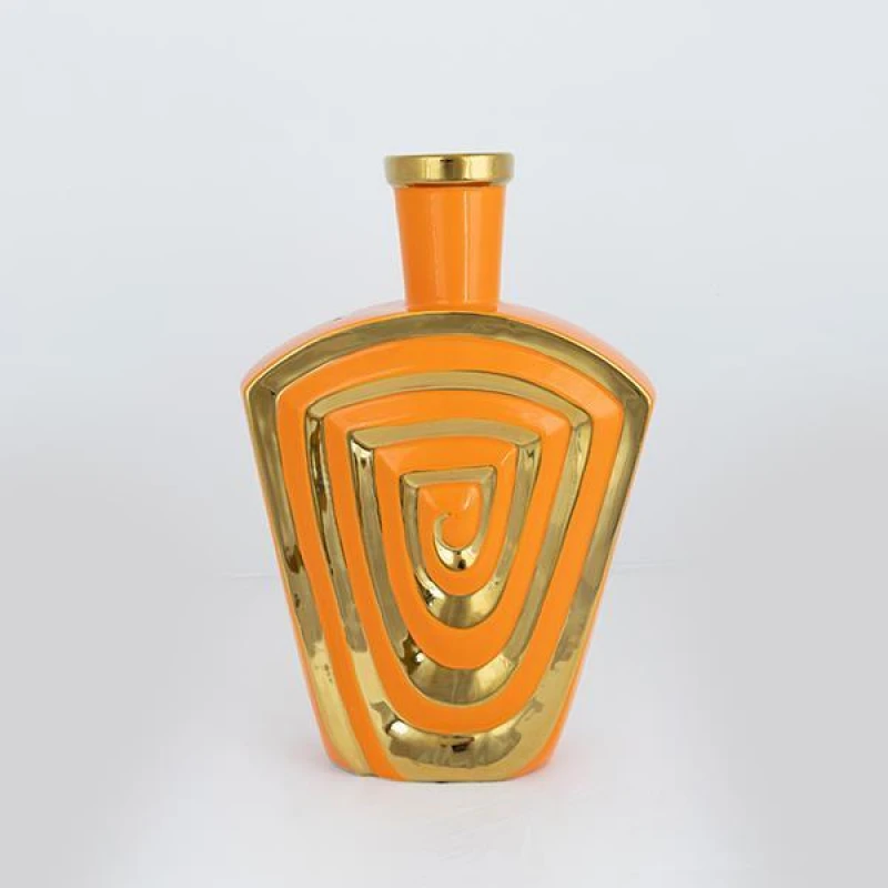 Βάζο κεραμικό σε χρυσό - πορτοκαλί χρώμα από την ESTHETI - Διαστάσεις: 23,7x9,5x37,5εκ.
