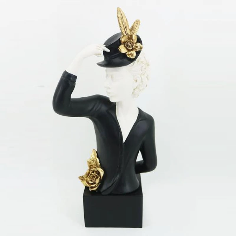 Επιτραπέζια διακοσμητική γυναικεία φιγούρα με καπέλο, polyresin σε χρυσό - λευκό - μαύρο χρώμα από την ESTHETI - Διαστάσεις: 16,5x11x36,5εκ.