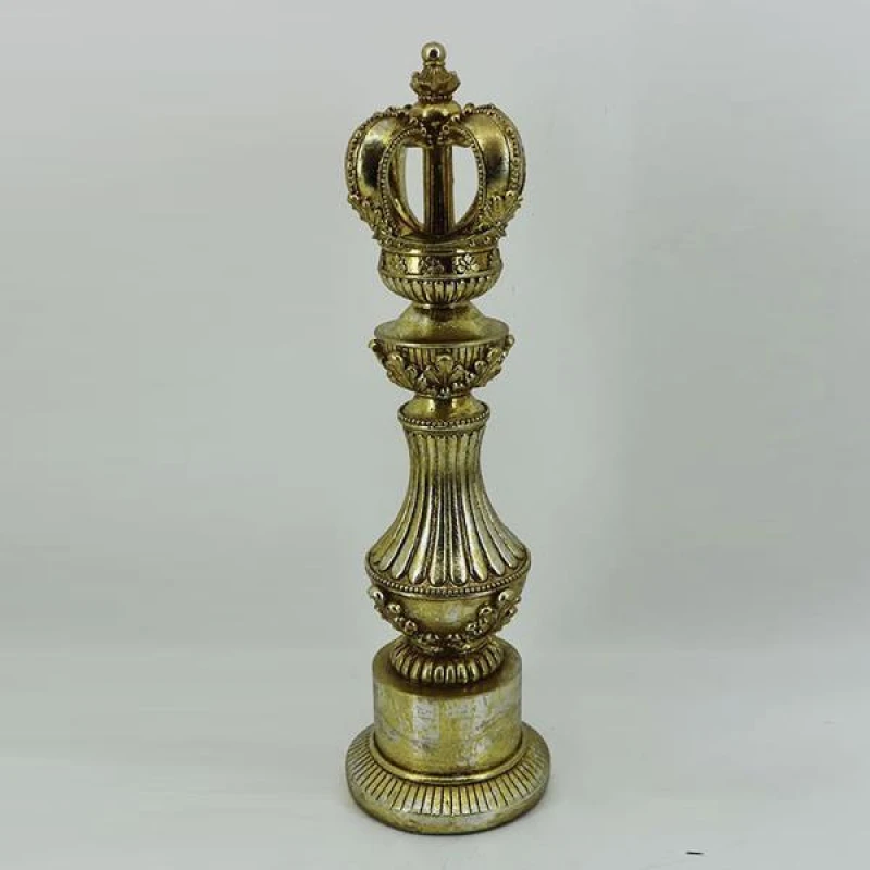 Διακοσμητικό επιτραπέζιο πιόνι στέμμα polyresin σε χρυσό χρώμα από την ESTHETI - Διαστάσεις: 9,5x9,5x33εκ.
