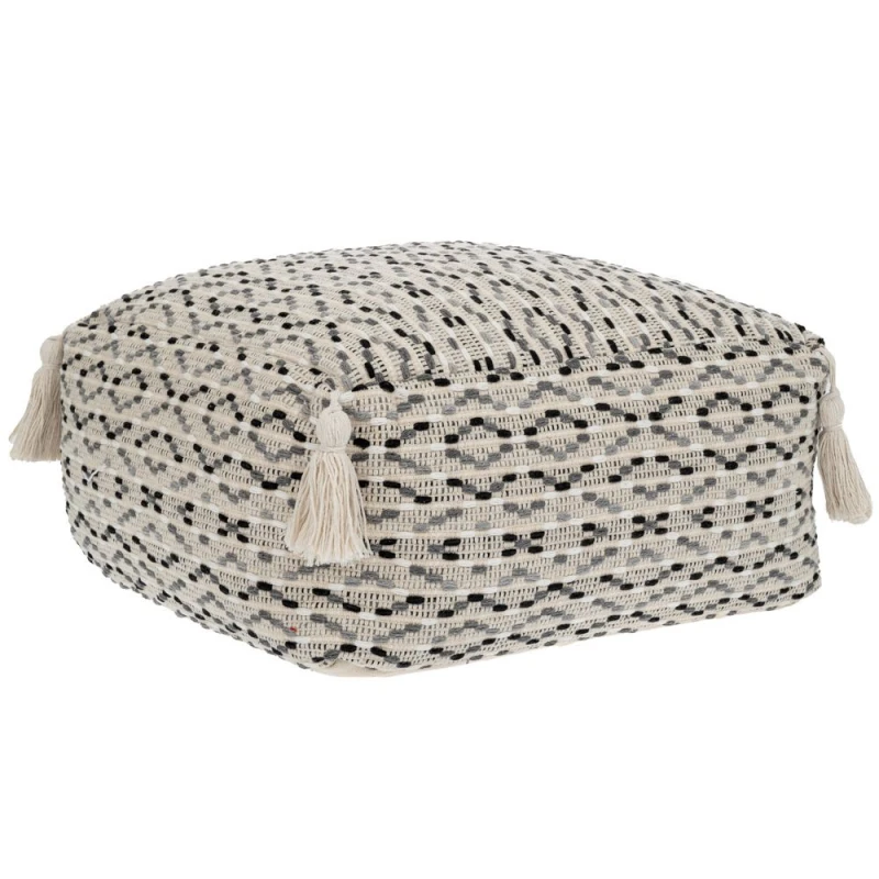 Πουφ δαπέδο υφασμάτινο 50% βαμβάκι-50% polyester με αποχρώσεις του εκρού-γκρι-μαύρου από την iliadis - Διαστάσεις: 40x40x20εκ.