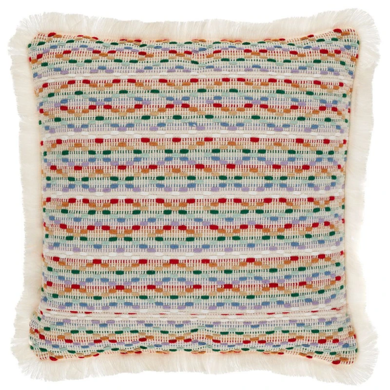 Διακοσμητικό μαξιλάρι υφασμάτινο, 50% βαμβακερό-50% polyester σε λευκό χρώμα με πολύχρωμα σχέδια από την iliadis - Διαστάσεις: 42x42εκ.