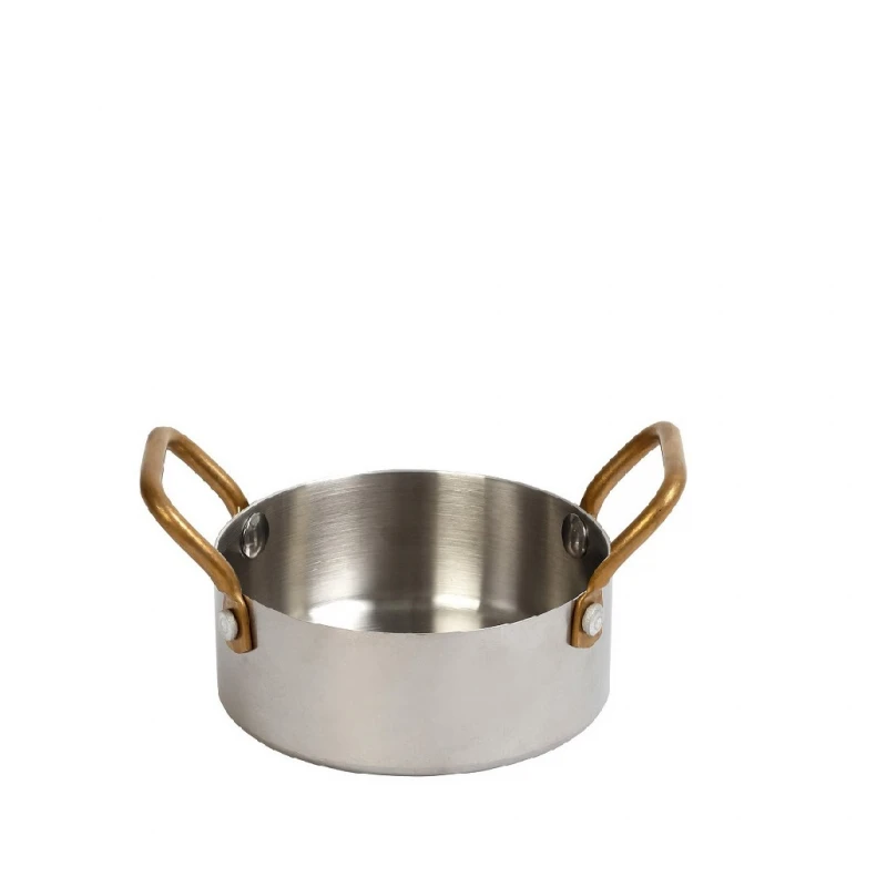Σκεύος σερβιρίσματος ανοξείδωτο 18/10, σε ασημί χρώμα με χρυσές λαβές της σειράς Shiny από την ESPIEL - Διαστάσεις: 16x12x5εκ. - Χωρητικότητα: 500ml.