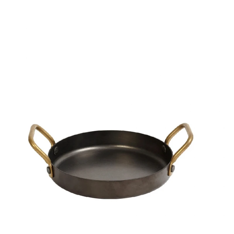 Σκεύος σερβιρίσματος - σαγανάκι ανοξείδωτο 18/10 σε μαύρο χρώμα με χρυσές λαβές της σειράς Snow από την ESPIEL - Διαστάσεις: 19x14x3εκ. - Χωρητικότητα: 370ml.