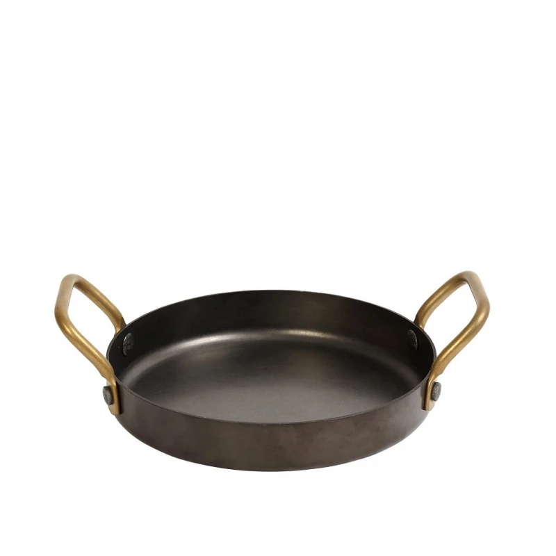 Σκεύος σερβιρίσματος - σαγανάκι ανοξείδωτο 18/10 σε μαύρο χρώμα με χρυσές λαβές της σειράς Snow από την ESPIEL - Διαστάσεις: 21x16x3εκ. - Χωρητικότητα: 500ml.