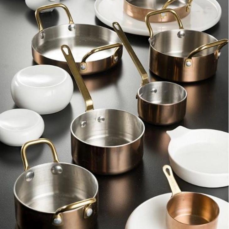 Η συλλογή ''SHINY'' σε χάλκινο χρώμα, με ποικιλία σκευών, θα σας προσφέρει μια διαφορετική παρουσίαση των εδεσμάτων σας και θα δώσει μια καινούργια, ανανεωμένη όψη στο σερβίρισμα σας. Κατασκευασμένα από ανοξείδωτο ατσάλι 18/10 με PVD επίστρωση, με πιστοποιητικό καταλληλότητας για επαφή με τρόφιμα και κατάλληλα για πλυντήριο πιάτων, ενθουσιάζουν με τις μοντέρνες φόρμες τους, την ανθεκτική κατασκευή τους για καθημερινή επαγγελματική χρήση!