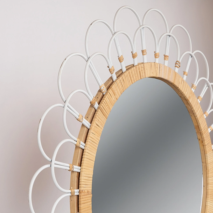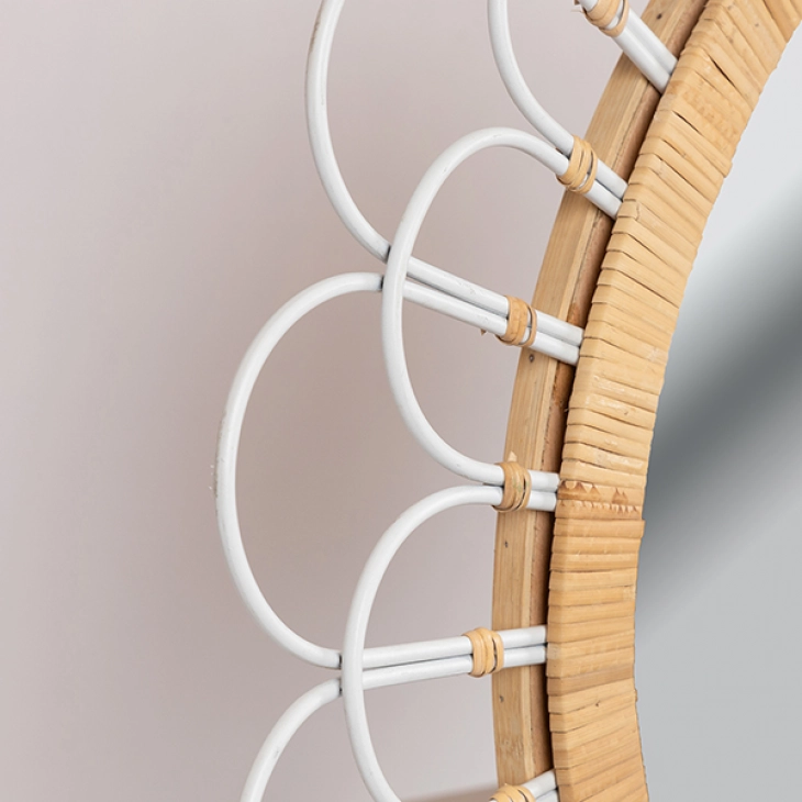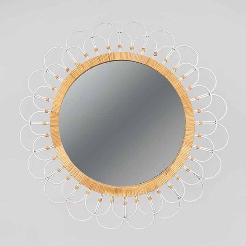Καθρέπτης τοίχου μεταλλικός - ξύλινος σε φυσικό - λευκό χρώμα από την ESTHETI - Διαστάσεις: 92x3,5x92εκ.
