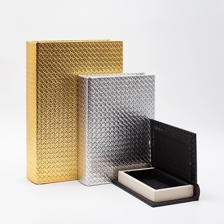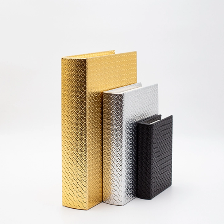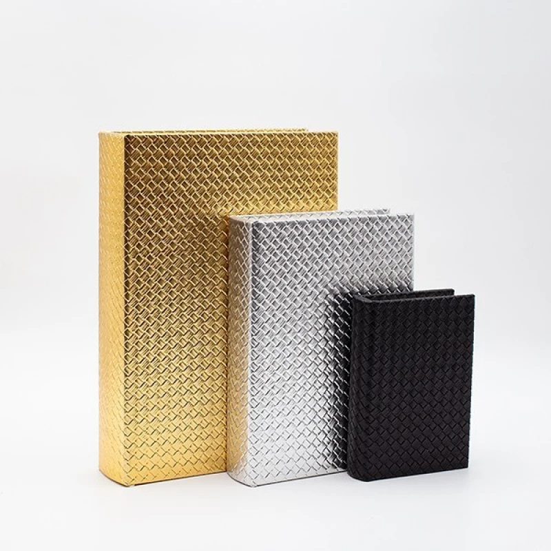 Διακοσμητικά κουτιά βιβλία σετ 3τμχ ξύλινα - pu σε χρυσό - μαύρο - ασημί χρώμα από την ESTHETI - Διαστάσεις: 30x21x6εκ./23x17x4,5εκ./16x11x3εκ.