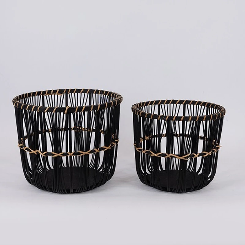 Σετ 2τμχ καλάθια ψάθινα σε μαύρο χρώμα από την ESTHETI - Διαστάσεις: 32x32x28εκ./27x27x25εκ.