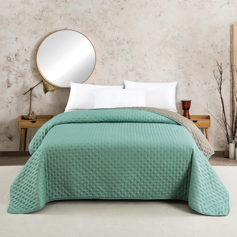 Κουβερλί διπλής όψεως Renzo από 100% ύφασμα Microfiber και πολυεστερική γέμιση 100 gsm. Αποτελεί το ιδανικό σκέπασμα για άνοιξη & καλοκαίρι, δίνει μια εξαιρετικά απαλή αίσθηση και είναι ανθεκτικό στις συχνές πλύσεις και στο χρόνο. Διατίθεται σε τρεις μοντέρνες αποχρώσεις & τρεις διαστάσεις.