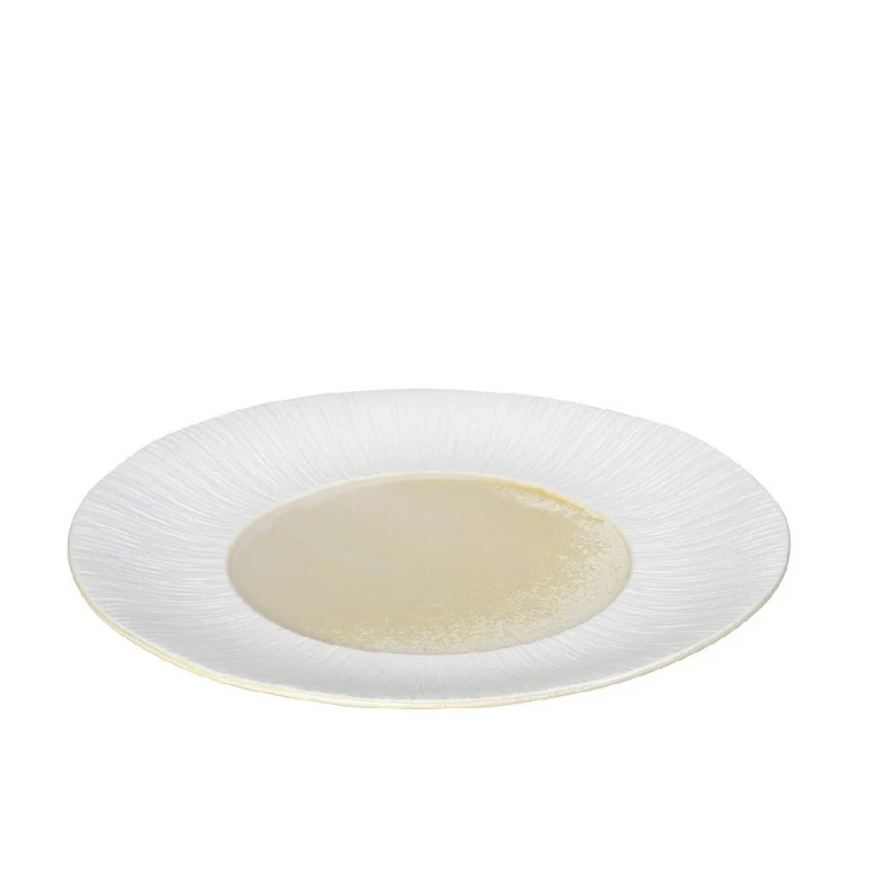 Πιάτο ρηχό πορσελάνης σε λευκό - κίτρινο χρώμα της σειράς Zen από την ESPIEL - Διαστάσεις: 28,5x3εκ. - Η ελάχιστη ποσότητα αγοράς για αυτό το προϊόν είναι 4τμχ.