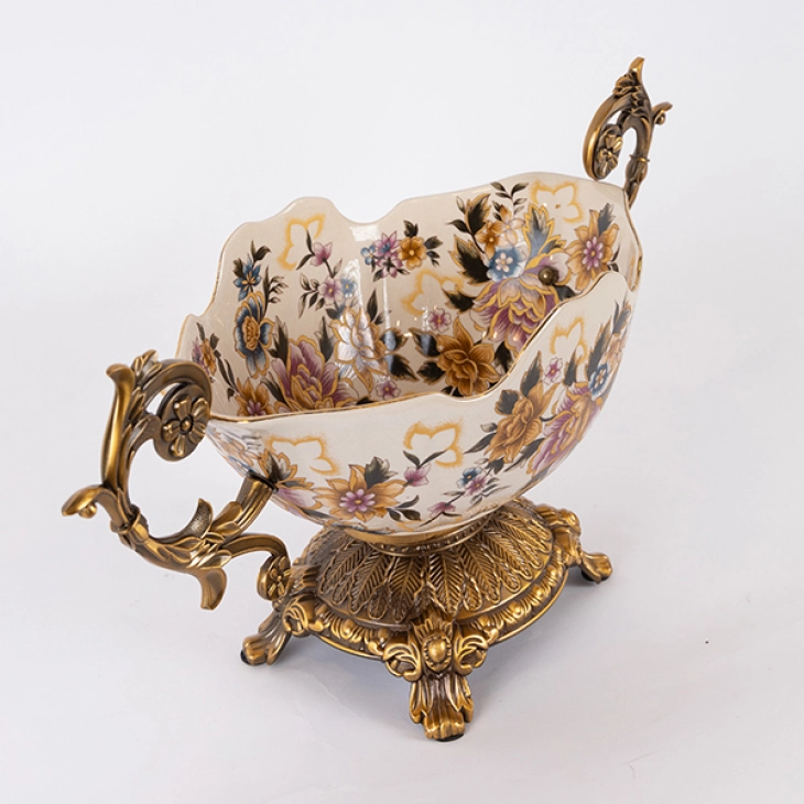 Διακοσμητικό Μπωλ Με Πόδι Πορσελάνης-Polyresin Λευκό-Χρυσό Με Λουλούδια 47x19x25εκ. ESTHETI 752-21036