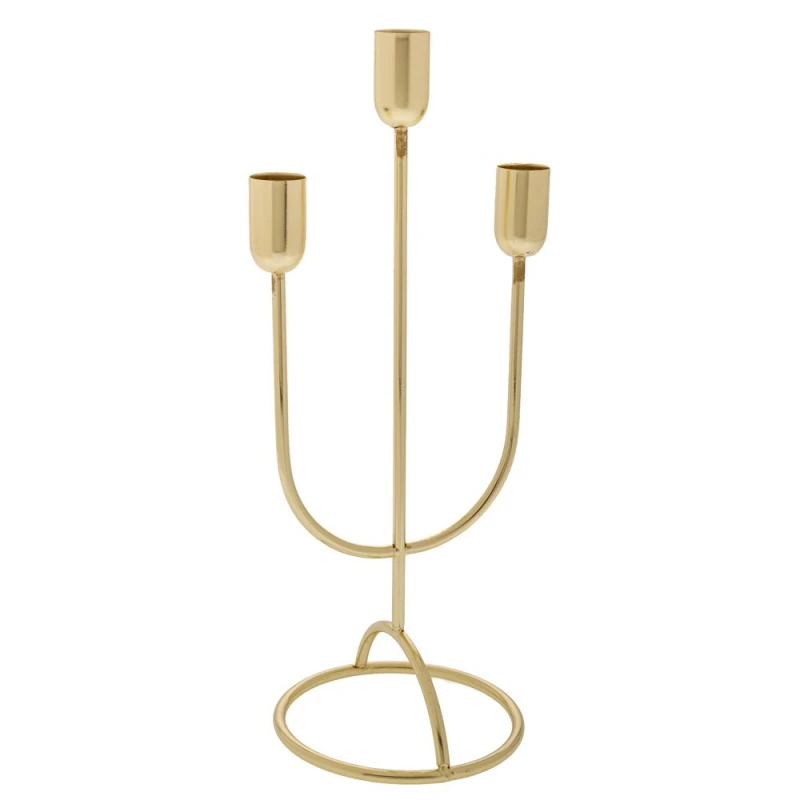 Κηροπήγιο 3 θέσεων μεταλλικό σε χρυσό χρώμα από την iliadis - Διαστάσεις: 11x22εκ.