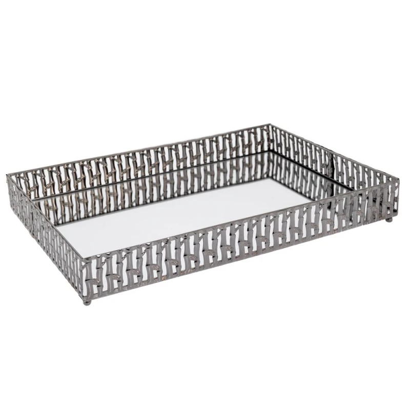 Δίσκος μεταλλικός με καθρέπτη, σε ασημί χρώμα από την iliadis - Διαστάσεις: 25x35εκ.