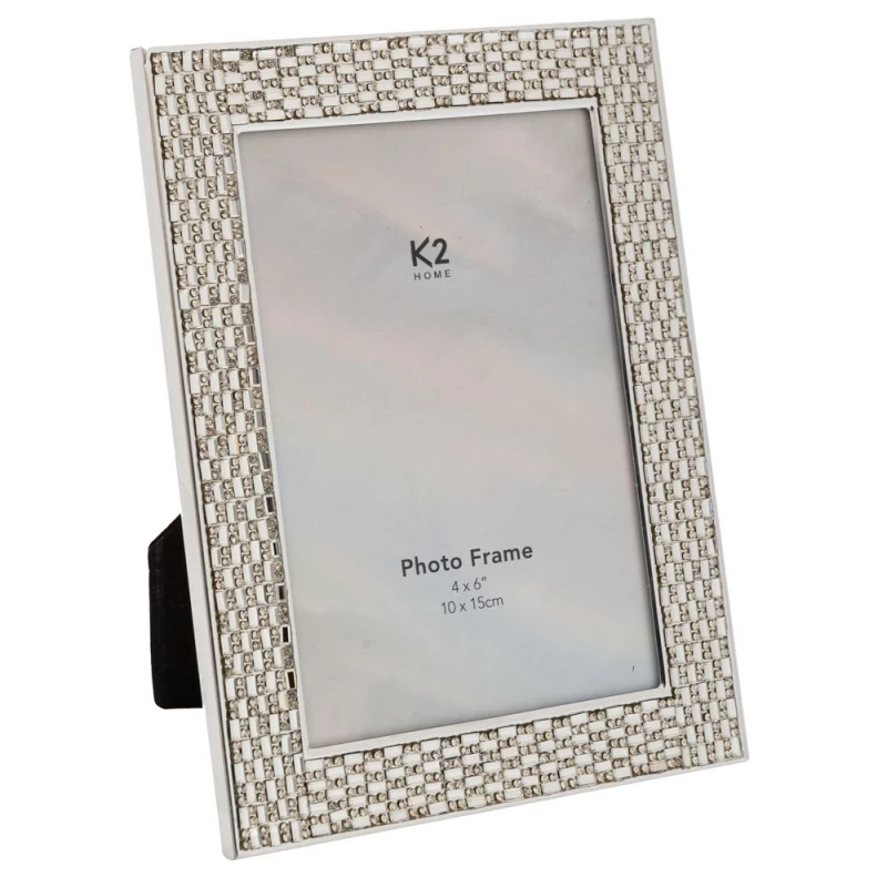 Κορνίζα μεταλλική σε ασημί χρώμα με ανάγλυφο πλαίσιο και στρας από την iliadis - Διαστάση φωτογραφίας: 10x15εκ.