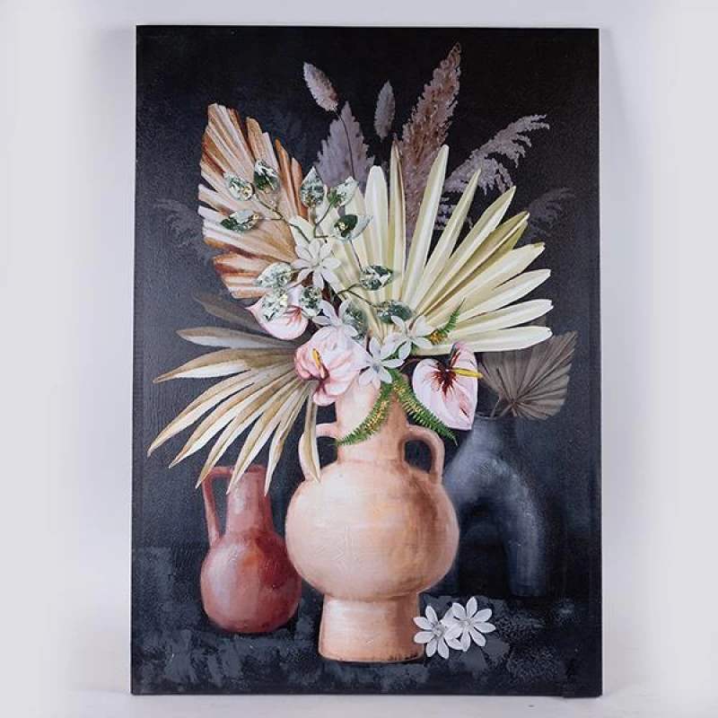 Πίνακας Καμβάς Βάζο Με Λουλούδια Multi-Μαύρος 70x3x100εκ. ESTHETI 755-12204