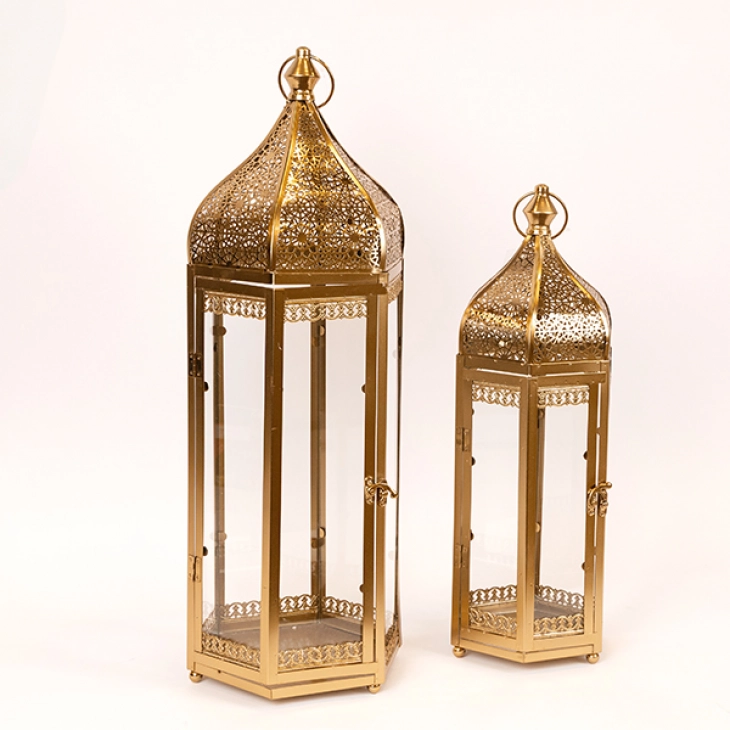 Φανάρι σετ 2τμχ μεταλλικό σε μπρονζέ χρώμα από την ESTHETI - Διαστάσεις: 17x15x48εκ.-23x20x64εκ.