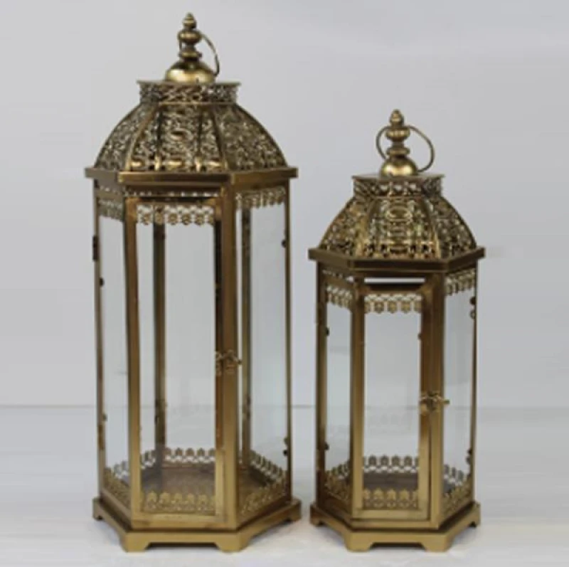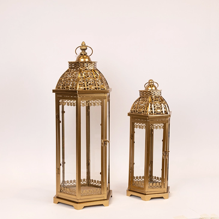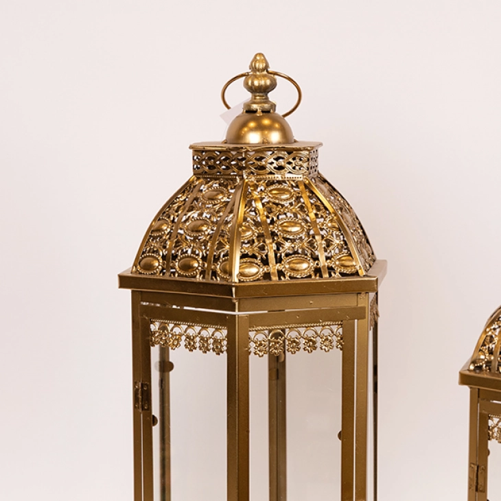 Φανάρι σετ 2τμχ μεταλλικό σε μπρονζέ χρώμα από την ESTHETI - Διαστάσεις: 20,5x18x46εκ.-25,5x22x62εκ.
