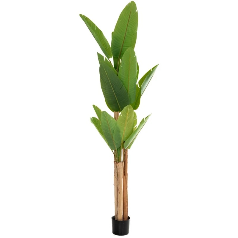 Τεχνητό φυτό μπανανιά, ύψους 260εκ. σε μαύρη πλαστική γλάστρα. Αποτελείται από 3 κορμούς και 23 φύλλα. Προσδίδει μία αίσθηση τροπικού κλίματος, ιδανικό για να διακοσμήσετε τον χώρο σας.