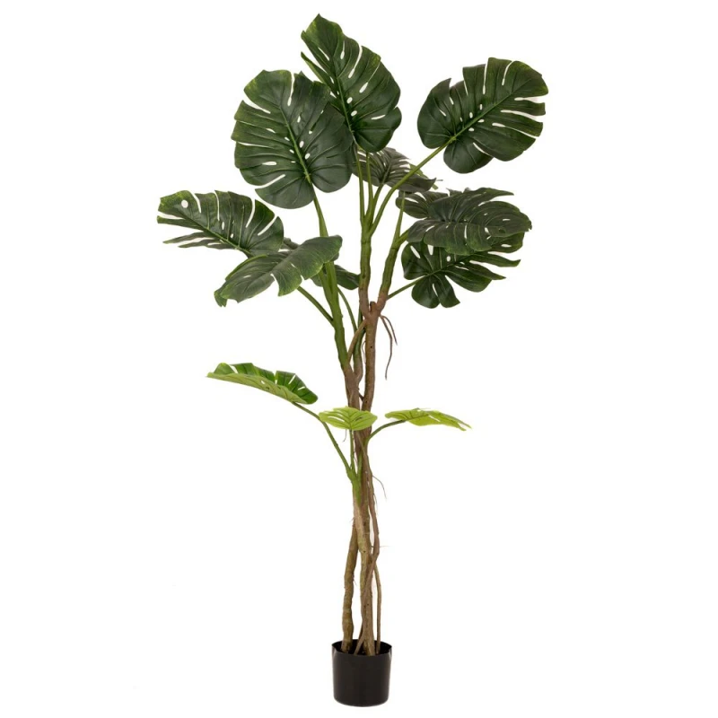 Τεχνητό φυτό μονστέρα, ύψους 180εκ. τοποθετημένο σε μαύρη πλαστική γλάστρα διαστάσεων 17x15εκ. Αποτελείται από 13 φύλλα και προσδίδει μία αίσθηση τροπικού κλίματος, ιδανικό για να διακοσμήσετε τον χώρο σας.