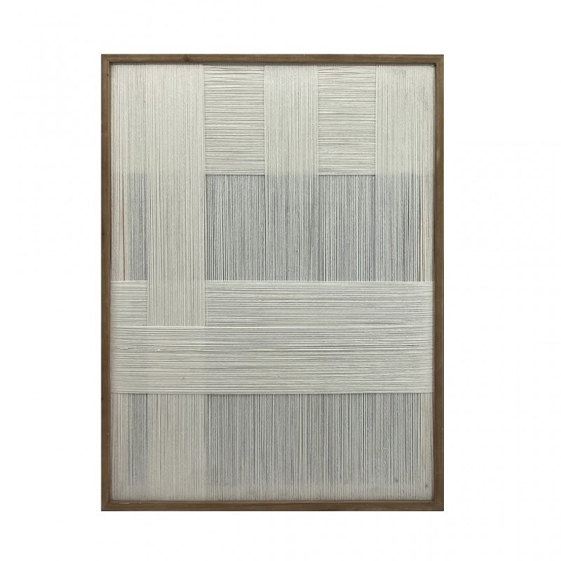 Πίνακας με ξύλινη κορνίζα και νήματα εσωτερικά σε μπεζ - γκρι χρώμα από την ESPIEL - Διαστάσεις: 60x3x80εκ.