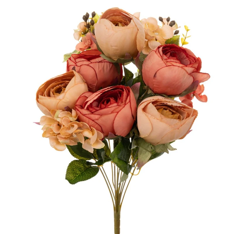 Μπουκέτο Με 12 Τριαντάφυλλα Και Ορτανσία Πορτοκαλί 52εκ. iliadis 90243
