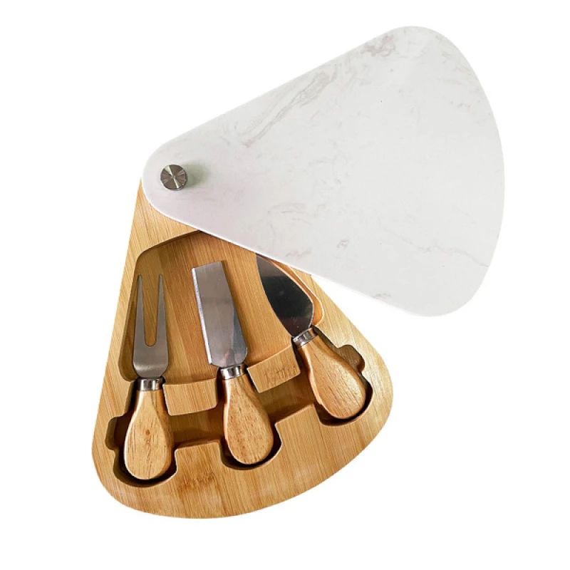 Πλατώ - δίσκος κοπής τυριών σετ 4τμχ bamboo - κεραμικό σε φυσικό - λευκό χρώμα από την ESPIEL - Διαστάσεις:23x18,8x3,3εκ.