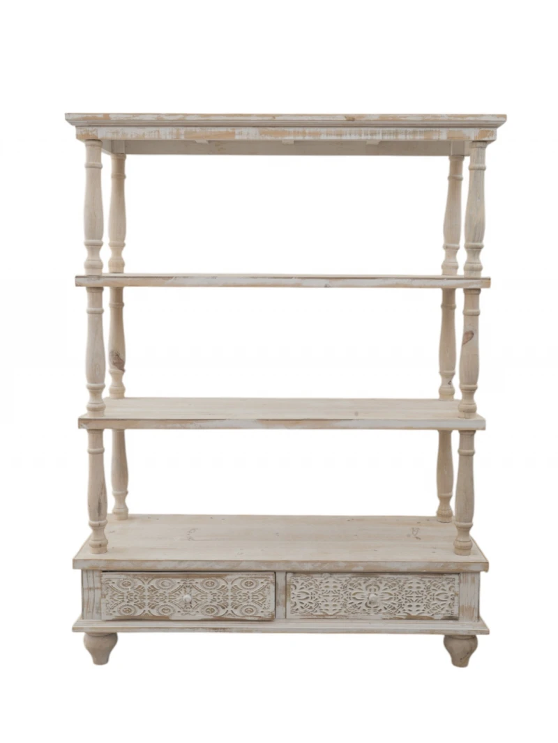 Ραφιέρα με 2 συρτάρια στο κάτω μέρος, αντικέ από την Zen Collection - Διαστάσεις: 99,5x40x131εκ.