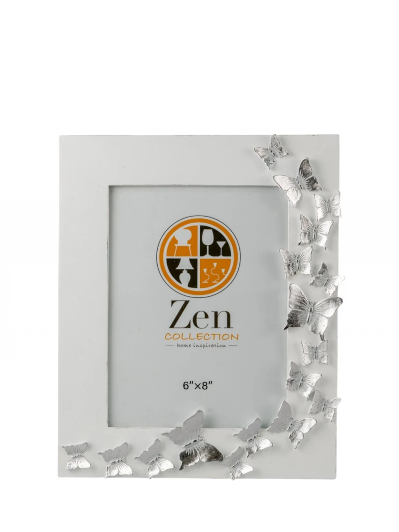 Κορνίζα polyester σε λευκό χρώμα με ασημί πεταλούδες από την Zen Collection - Διαστάσεις φωτογραφίας: 15x20εκ.