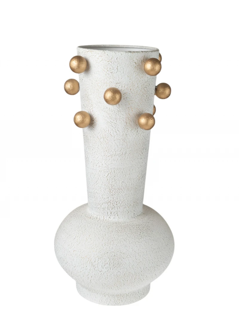 Βάζο μεταλλικό σε αντικέ μπεζ χρώμα με χρυσές μπίλιες από την Zen Collection - Διαστάσεις: 20x20x39,5εκ.
