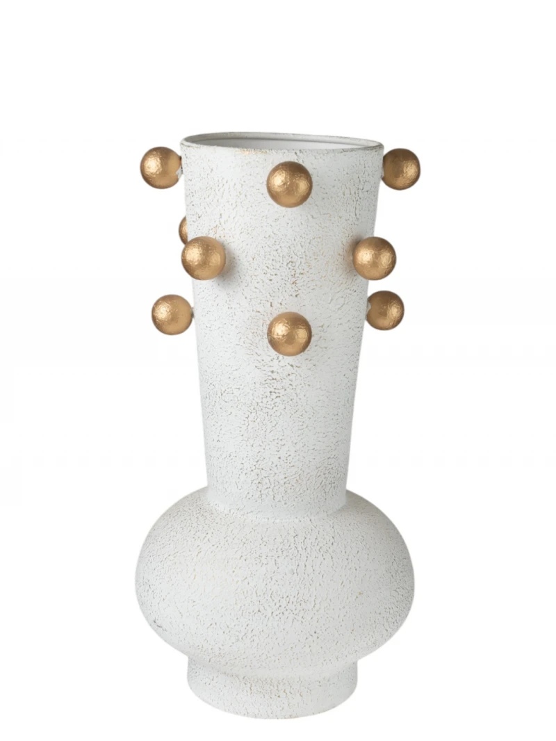 Βάζο μεταλλικό σε αντικέ μπεζ χρώμα με χρυσές μπίλιες από την Zen Collection - Διαστάσεις: 16x16x35εκ.