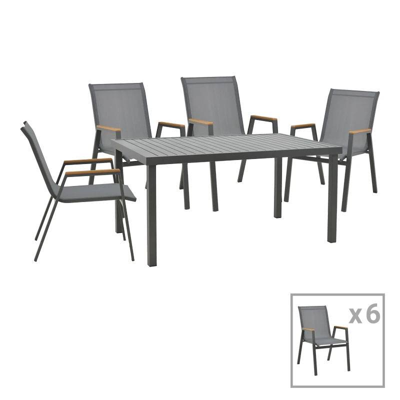 Τραπεζαρία Azelie-Kliton pakoworld σετ 7τεμ ανθρακί ύφασμα-ανθρακί αλουμίνιο 150x80x74εκ