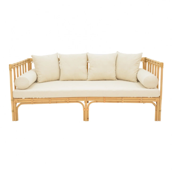 Καναπές Alessa pakoworld φυσικό rattan-λευκό ύφασμα με μαξιλάρια 200x100x76εκ