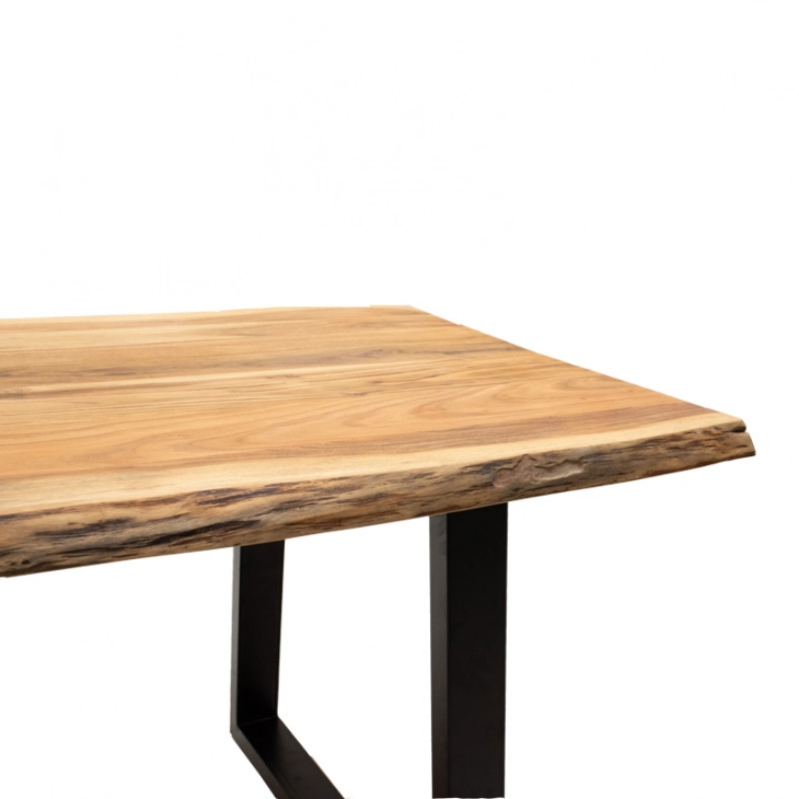Τραπέζι Miles Slim pakoworld μασίφ ξύλο ακακίας σε φυσική απόχρωση με μαύρα μεταλλικά πόδια 180x90x76εκ