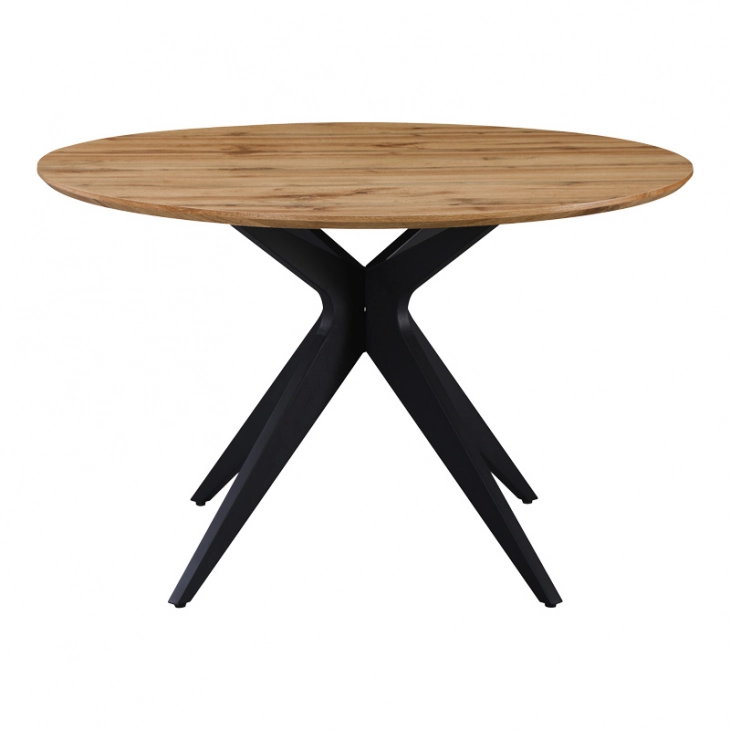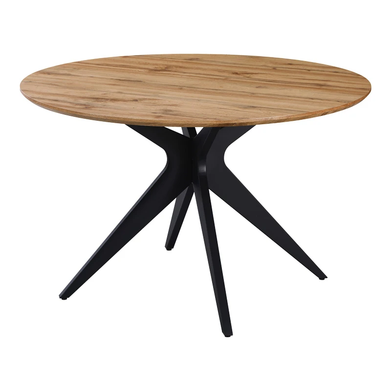 Τραπέζι Toda pakoworld mdf σε sonoma απόχρωση με μαύρα μεταλλικά πόδια Φ120x75εκ