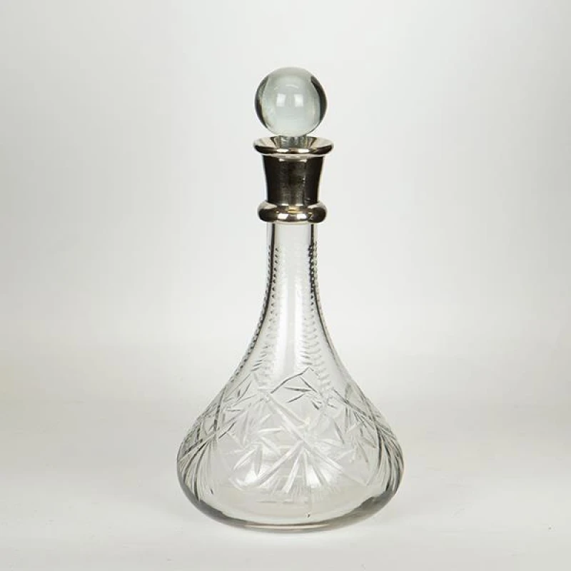 Καράφα γυάλινη διάφανη με μεταλλικό διακοσμητικό στοιχείο σε ασημί χρώμα από την ESTHETI -Διαστάσεις: 15,5x28εκ.