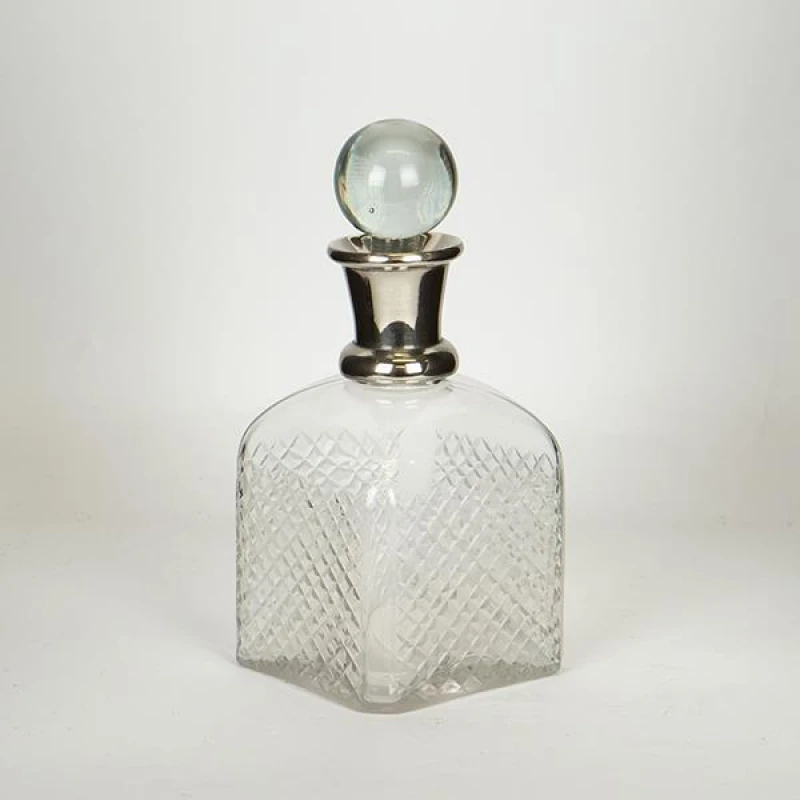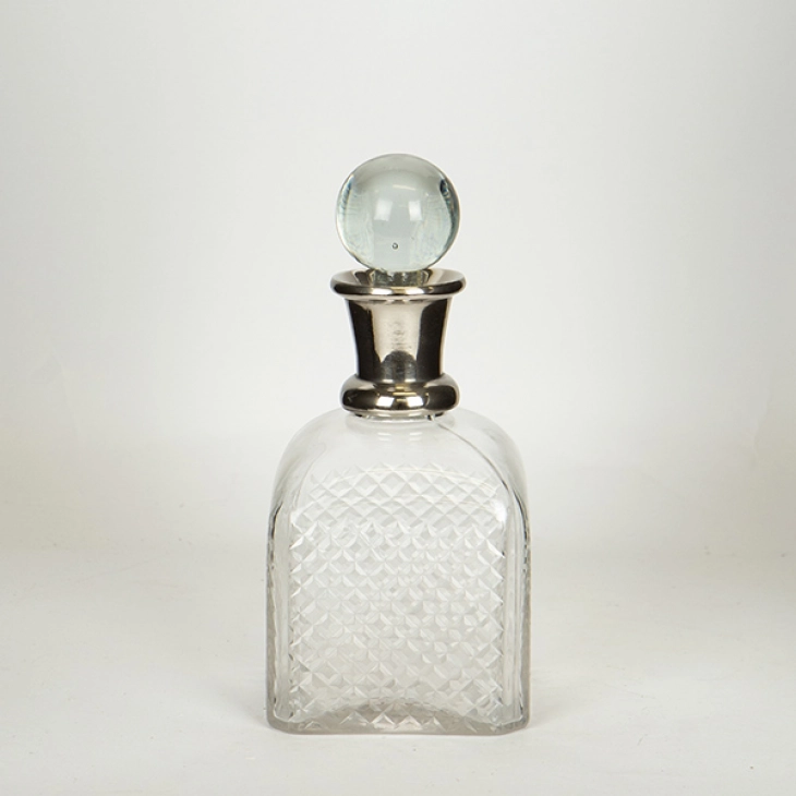 Καράφα γυάλινη διάφανη με μεταλλικό διακοσμητικό στοιχείο σε ασημί χρώμα από την ESTHETI -Διαστάσεις: 10x23εκ.