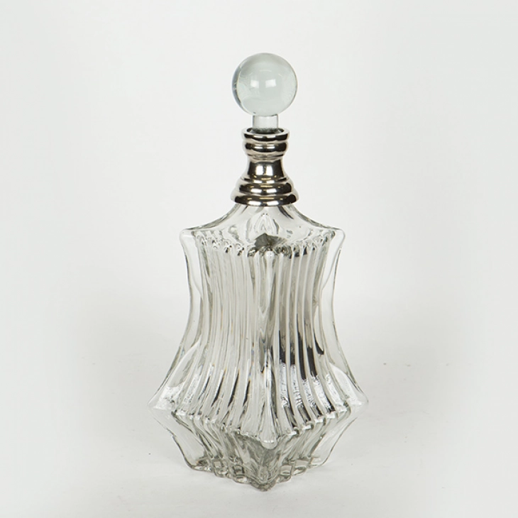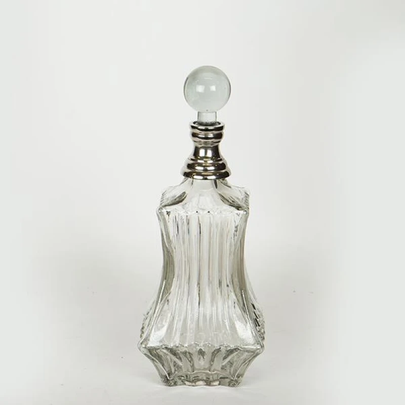 Καράφα γυάλινη διάφανη με μεταλλικό διακοσμητικό στοιχείο σε ασημί χρώμα από την ESTHETI -Διαστάσεις: 11x33εκ.