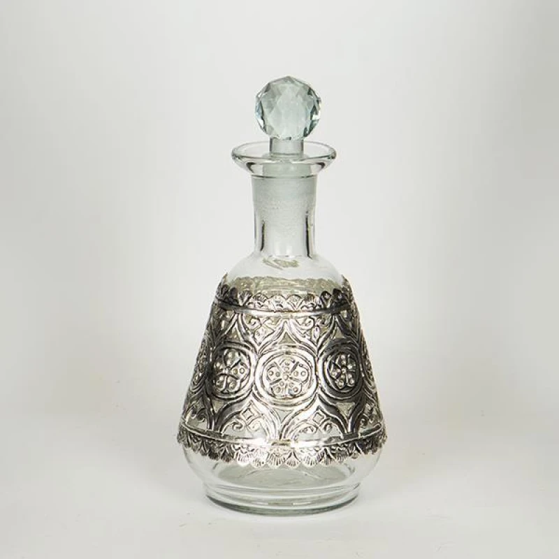 Καράφα γυάλινη διάφανη με μεταλλικό διακοσμητικό στοιχείο σε ασημί χρώμα από την ESTHETI -Διαστάσεις: 13x24εκ.