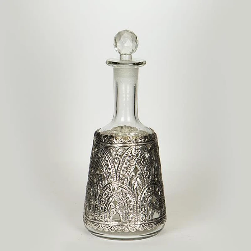 Καράφα γυάλινη διάφανη με μεταλλικό διακοσμητικό στοιχείο σε ασημί χρώμα από την ESTHETI -Διαστάσεις: 12,5x29εκ.