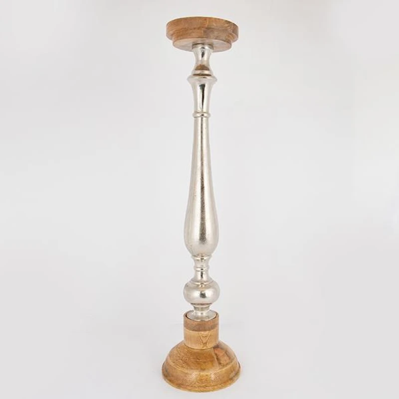 Κηροπήγιο ξύλινο - μεταλλικό σε ασημί - natural χρώμα από την ESTHETI - Διαστάσεις: 17x74εκ.