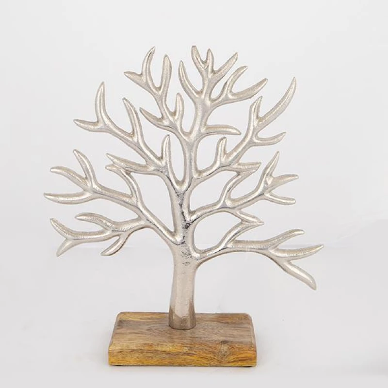 Επιτραπέζιο διακοσμητικό με μεταλλικό δέντρο σε ξύλινη βάση σε ασημί - φυσικό χρώμα από την ESTHETI - Διαστάσεις: 30x8x34εκ.