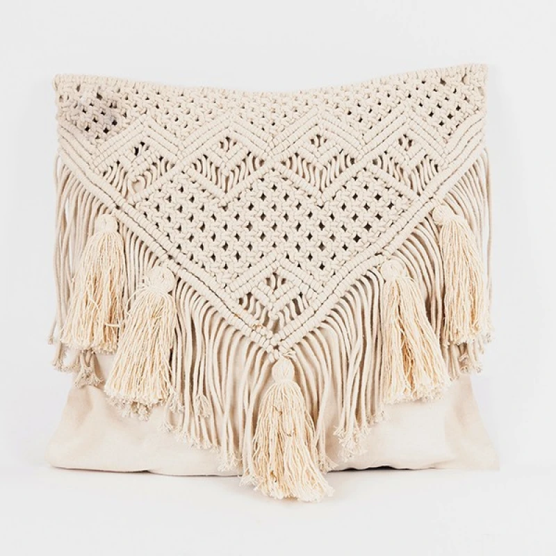 Διακοσμητικό μαξιλάρι μακραμέ σε μπεζ χρώμα από την ESTHETI - Διαστάσεις: 45x45εκ.