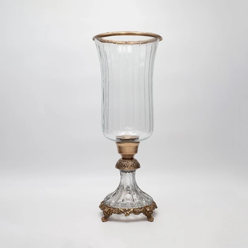 Βάζο γυάλινο διάφανο με μεταλλικά αντικέ χρυσά τελειώματα από την ESTHETI - Διαστάσεις: 17x38εκ.