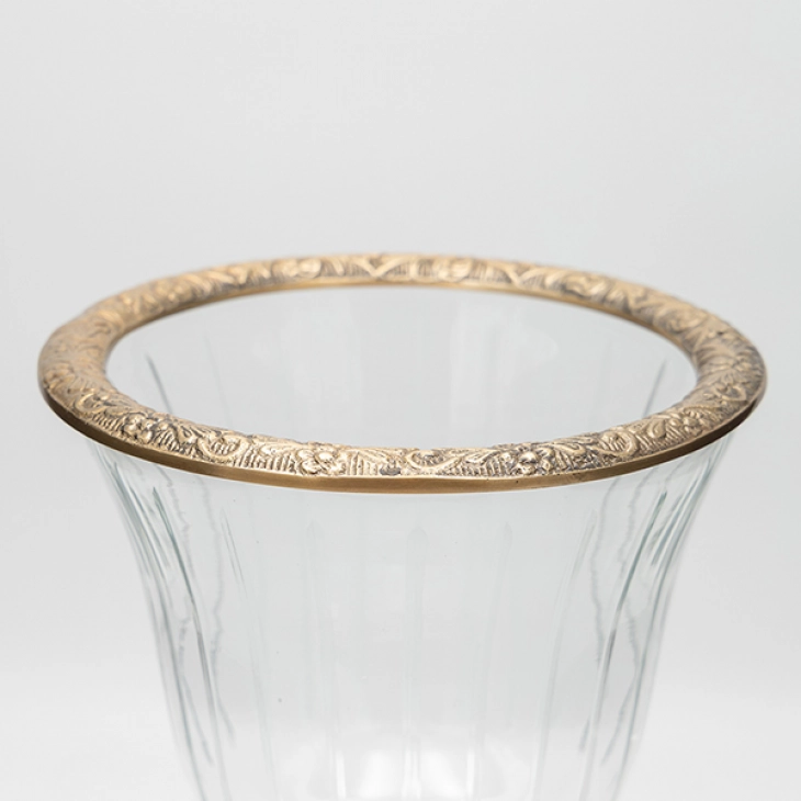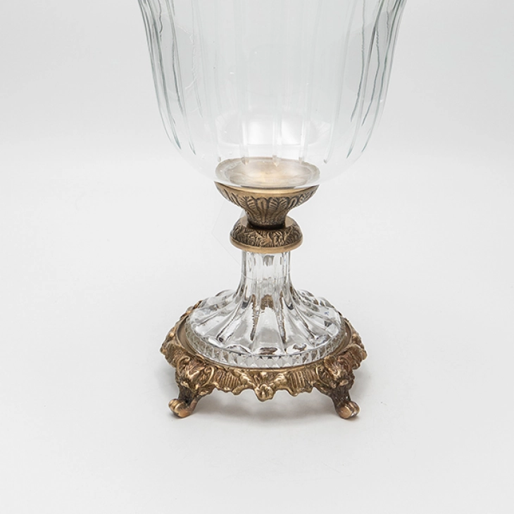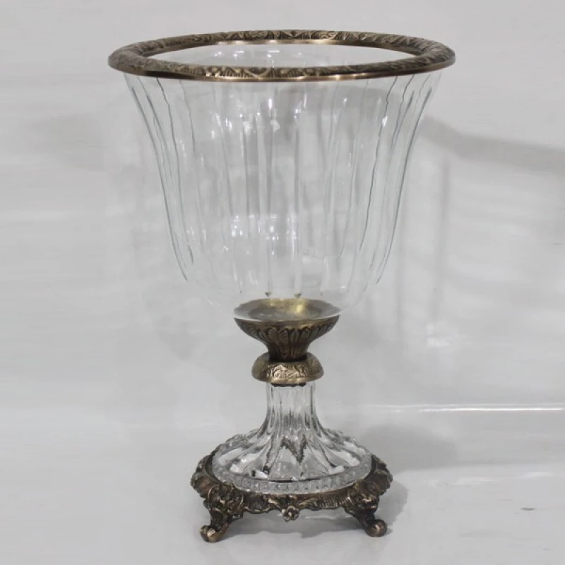 Διακοσμητικό μπωλ με πόδι γυάλινο, διάφανο με μεταλλικά αντικέ χρυσά τελειώματα από την ESTHETI - Διαστάσεις: 19x19x27εκ.